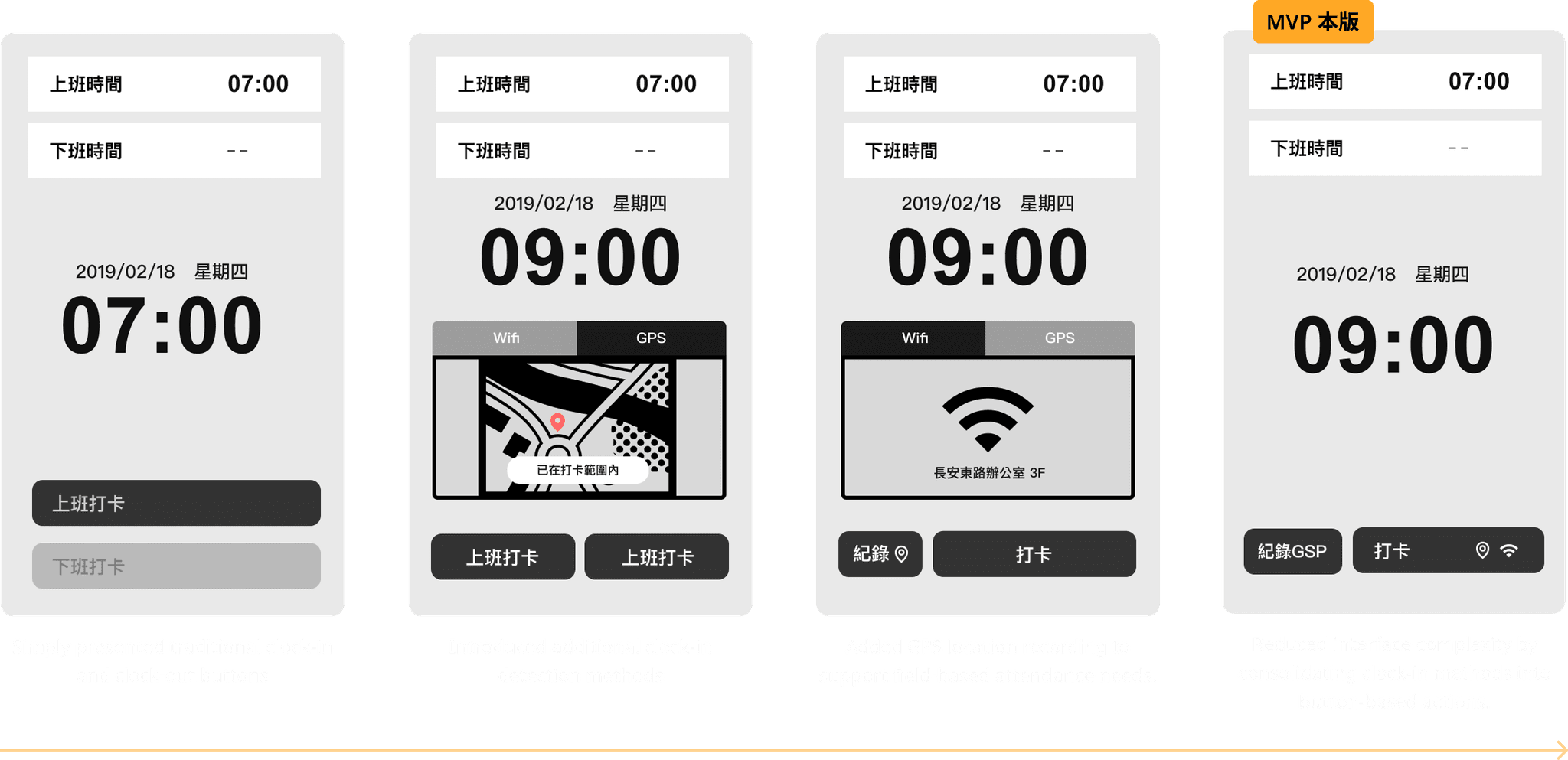 At the time, I had a strong debate with the PM over whether the clock-in feature should use one button or two. Because I could not clearly articulate a solid design rationale, the final decision followed the PM’s proposal. Looking back, this experience taught me that design value is not only about creating good interfaces, but also about clearly explaining the reasoning behind design decisions.