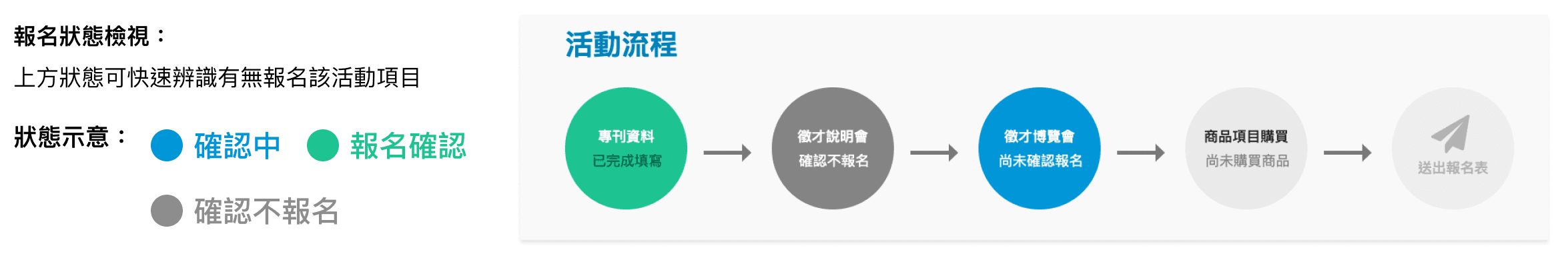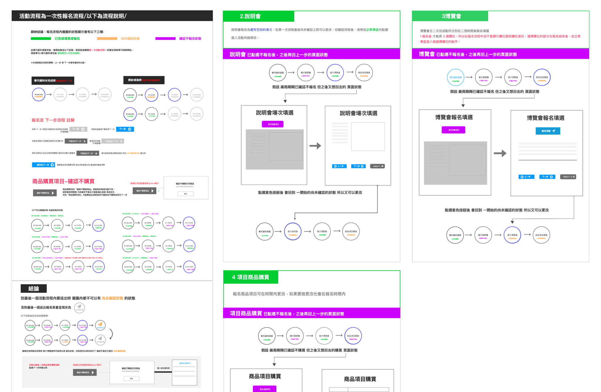 報名流程有多種可能出現的狀態,實作上我會以完整流程的說明圖來與內外部做更詳細的溝通