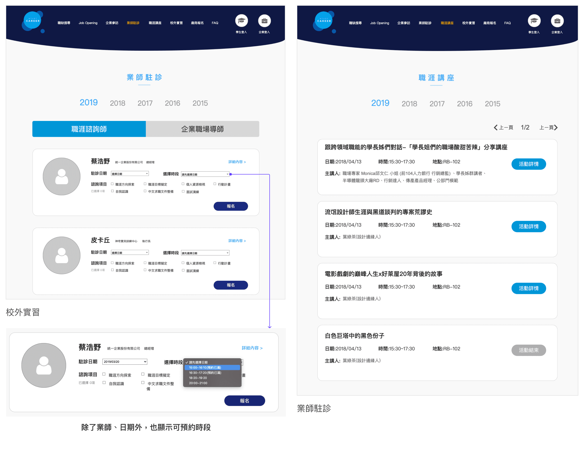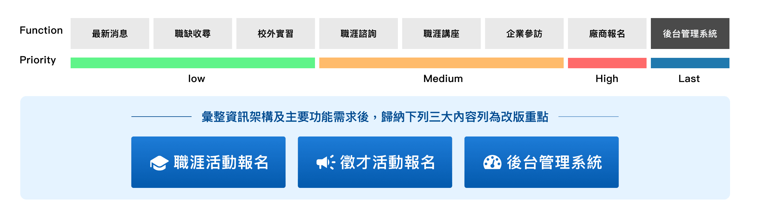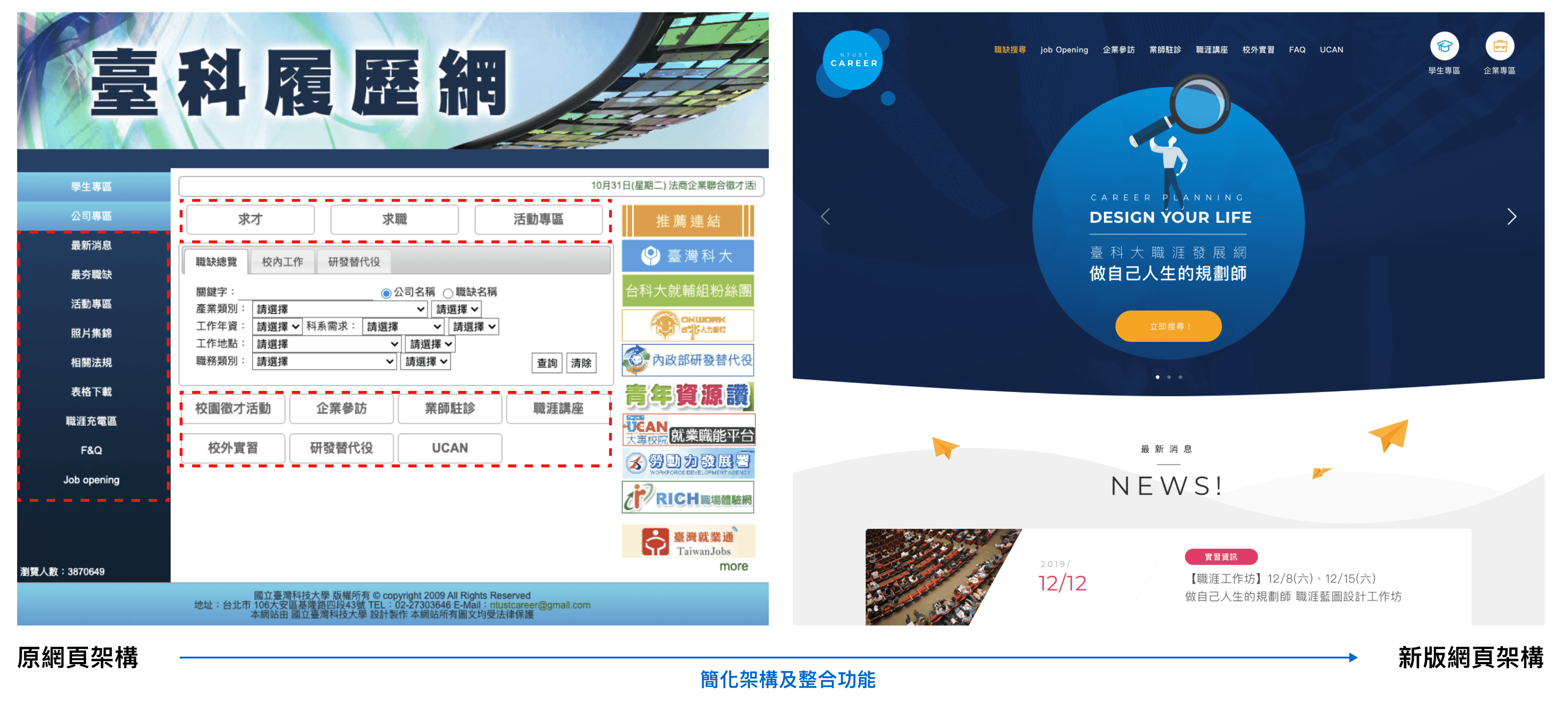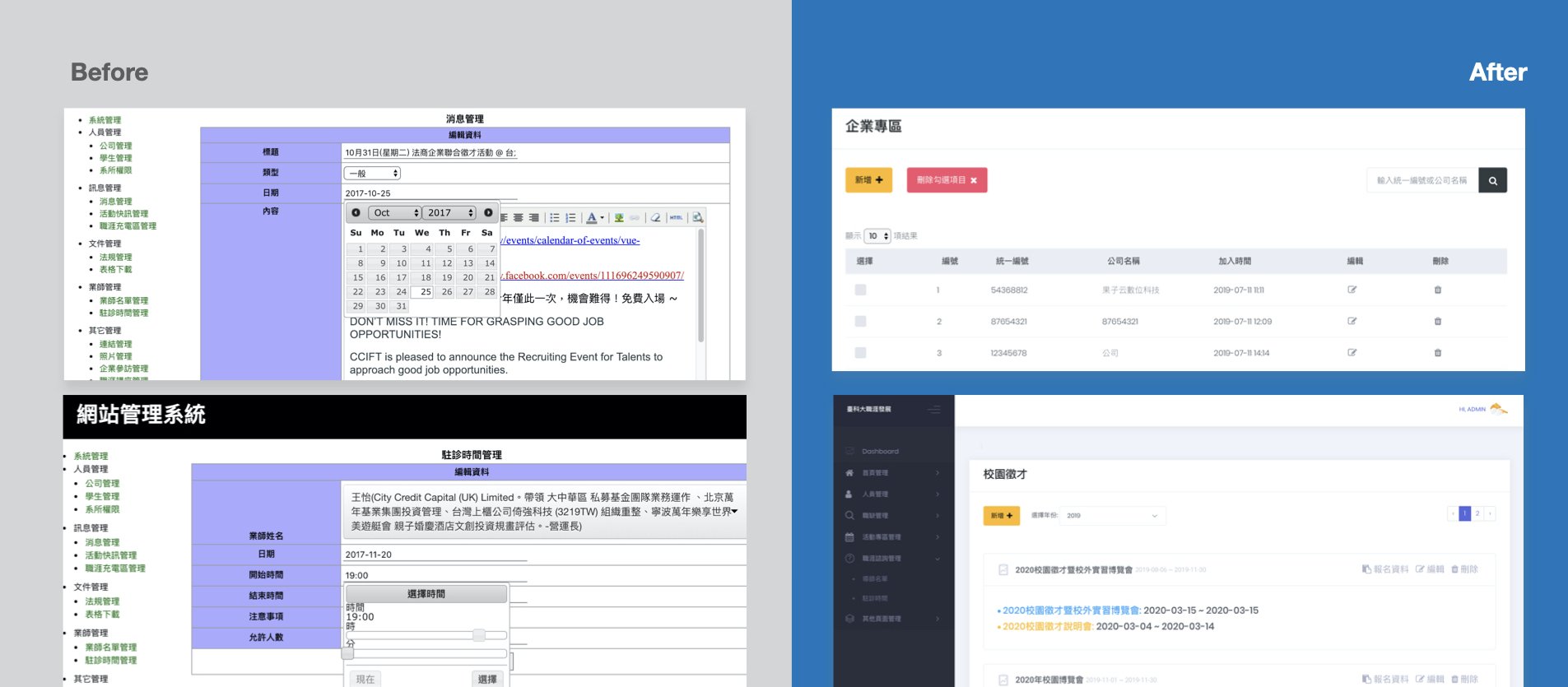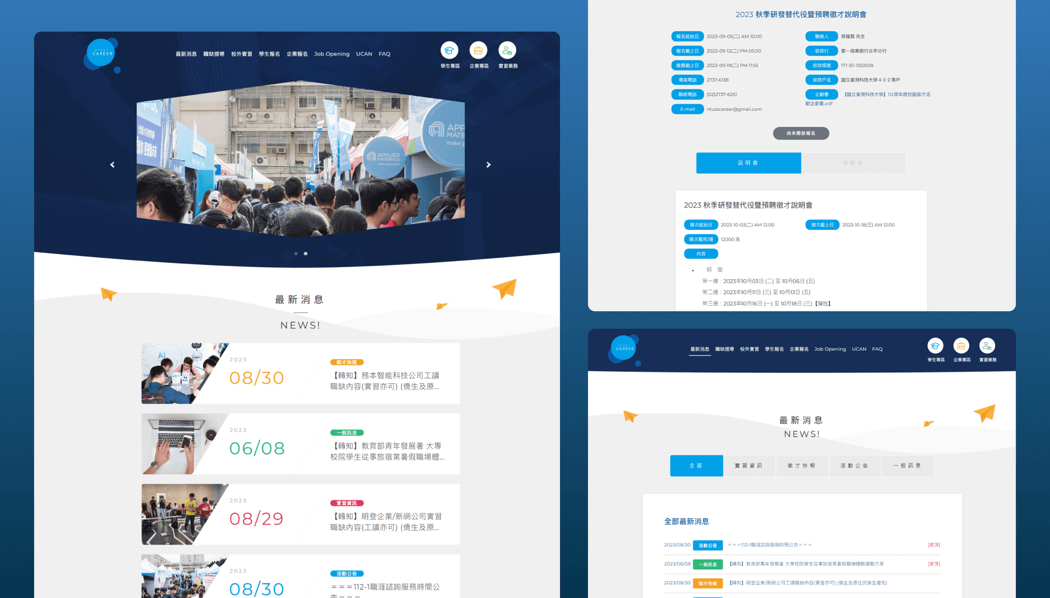 目標著重在改善「徵才活動」與「報名系統」的流暢體驗,除了優化視覺介面外,也優化前台網頁及後台管理系統。