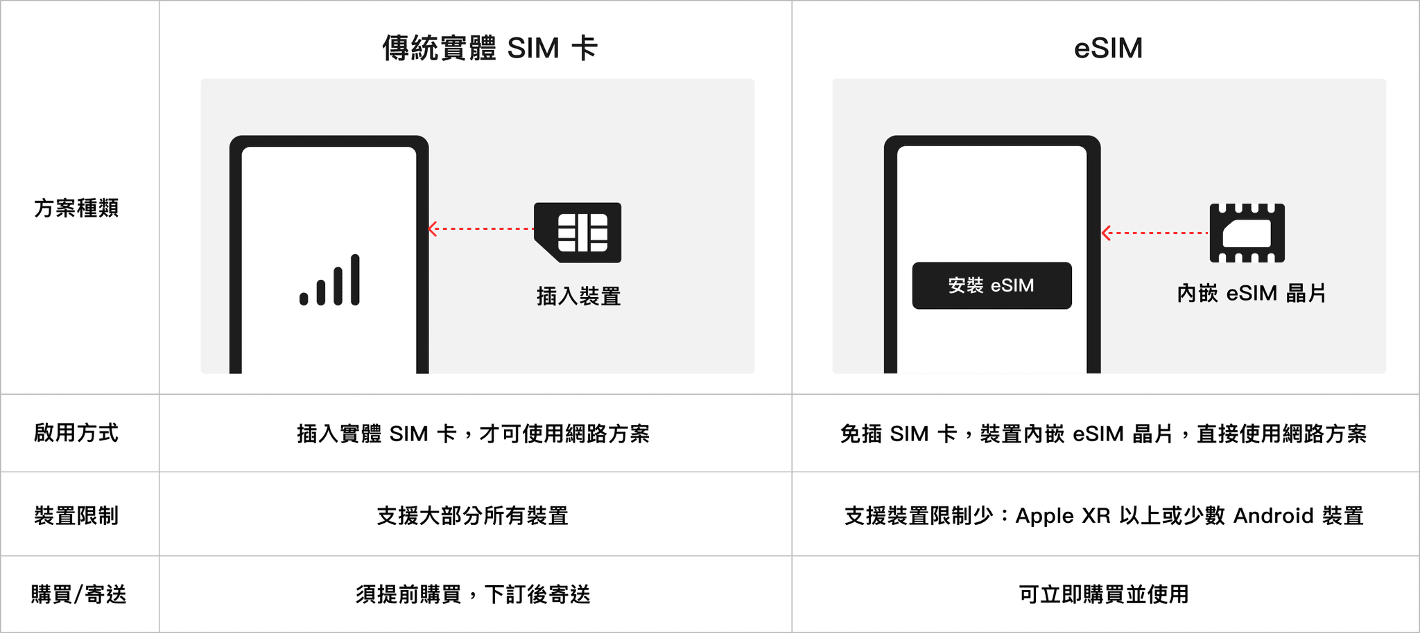 先來比較實體 SIM 卡與 eSIM !