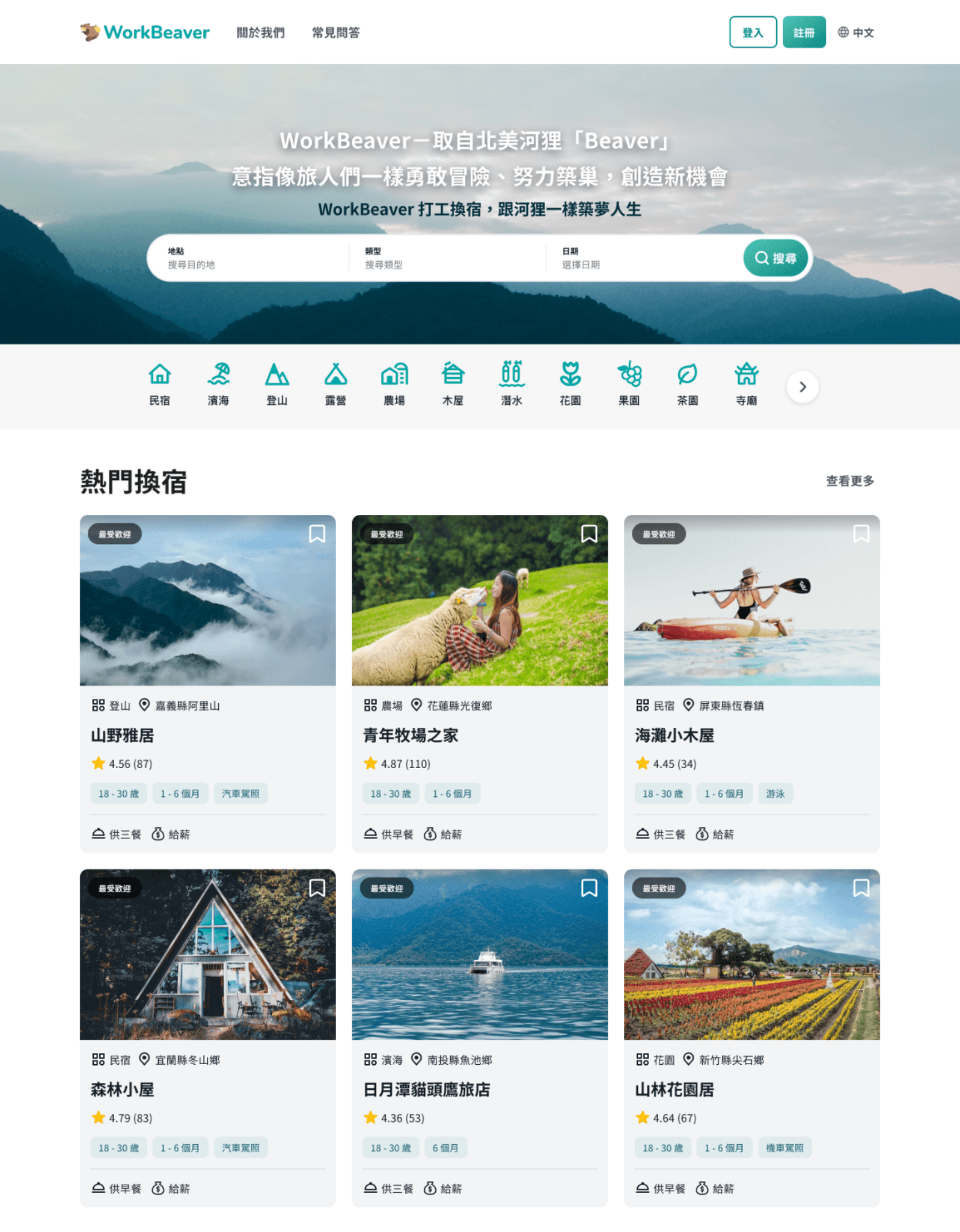 由於台灣目前幾乎沒有以打工換宿為核心的專屬平台,多數相關資訊仍以社群平台轉發打工文章的形式存在,因此我們透過此專案,嘗試規劃一個定位清楚、以打工換宿為核心的產品。